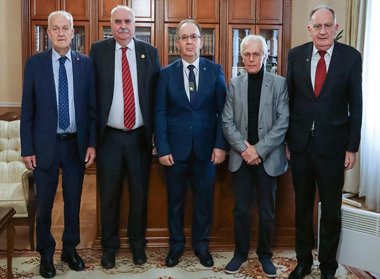 Предсједник Академије наука и умјетности Републике Српске (АНУРС) академик Драгољуб Мирјанић, са сарадницима, потпредсједницима Миливојем Унковићем, Душком Вулићем и генералним секретаром Есадом Јакуповићем, примио је 7. новембра 2025. године у радну посјету предсједника Српске академије наука и уметности (САНУ) академика Зорана Кнежевића.